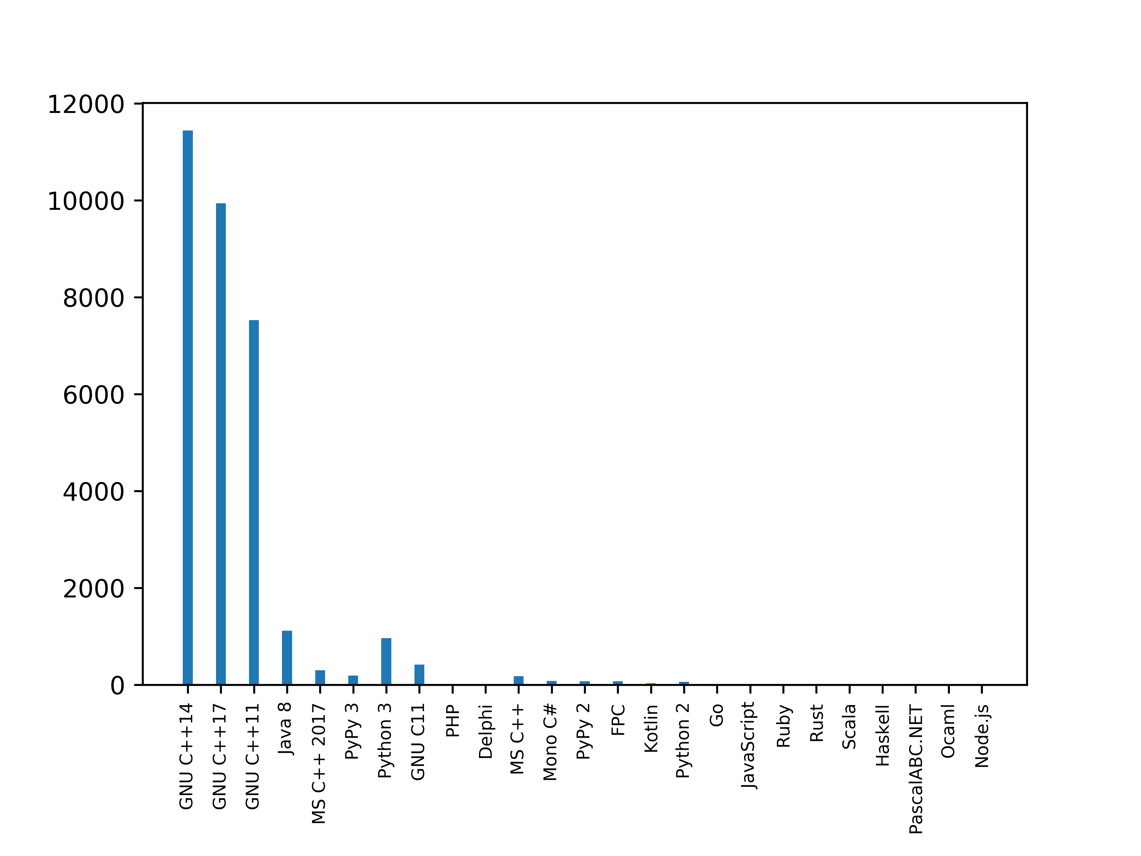 What else does our data show? That the contestants love to use C++ (which ever version) by a huge margin